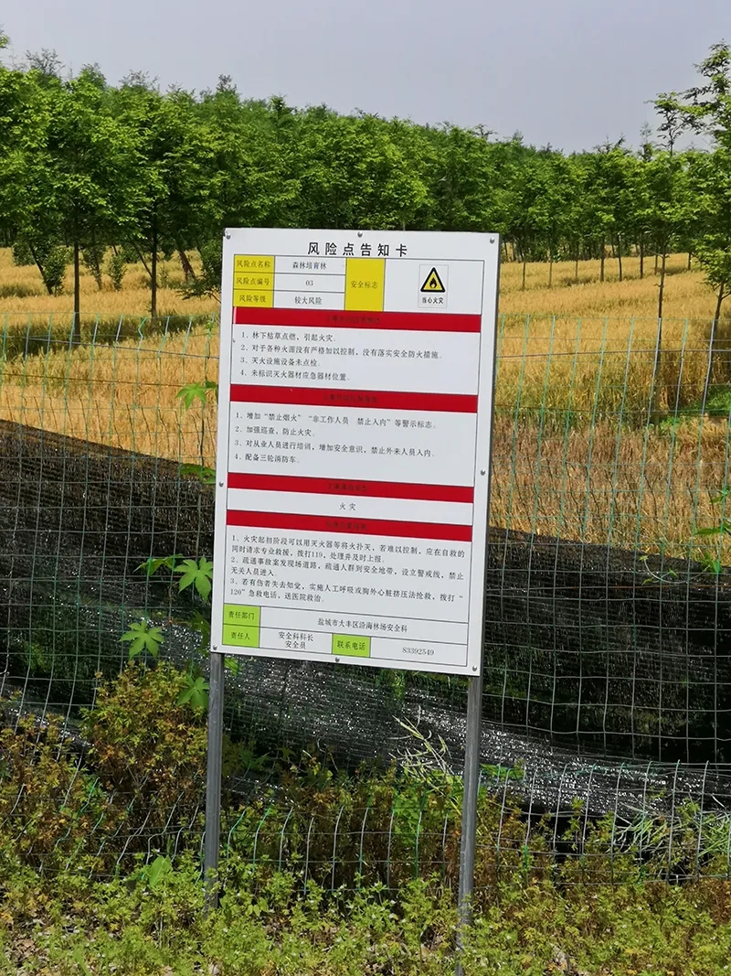 安裝安全規范操作及注意事項警示牌、風險點告知卡,簽訂安全生產責任狀……今年以來,大豐港區沿海林場突出“安全第一、預防為主、綜合治理”的安全生產工作方針,重抓安全檢查與巡查、安全培訓與學習、隱患排查與整改、安全責任分解與落實四項基礎工作,積極穩妥推動各項安全工作有序展開,全力保證安全生產形勢平穩有序。