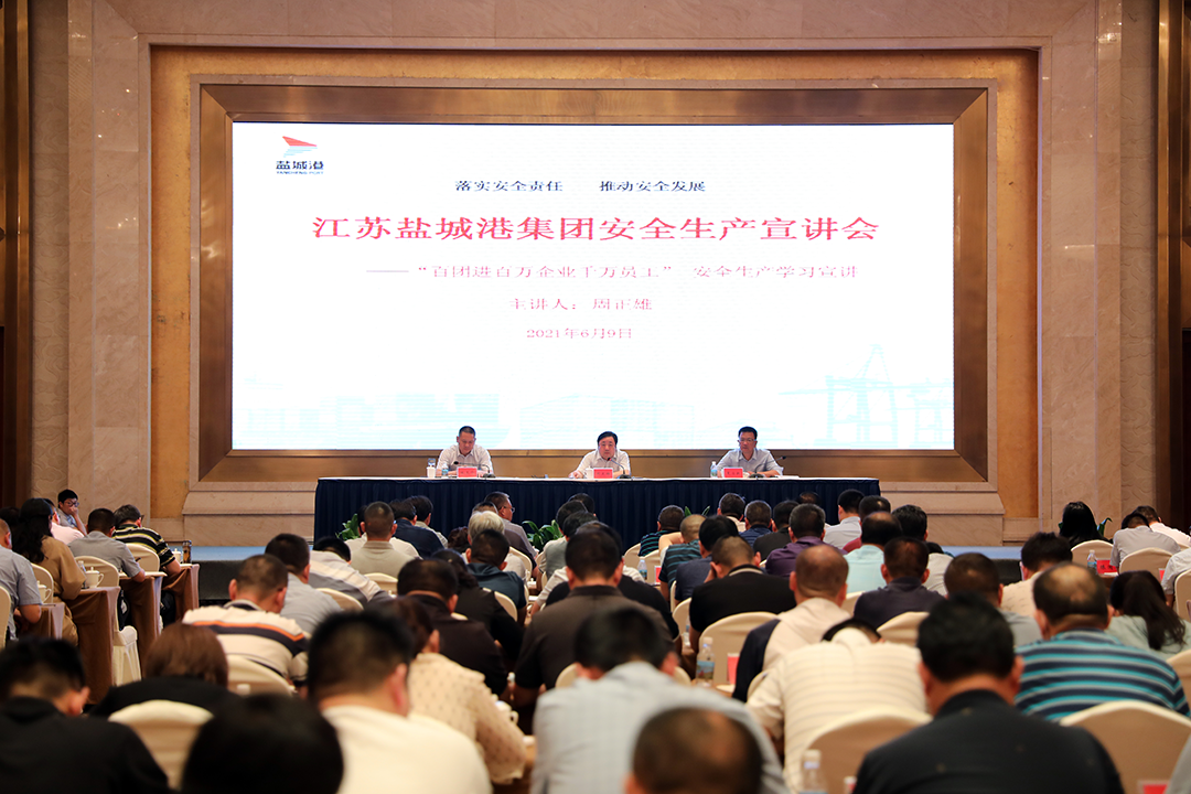 根據(jù)省、市安全生產(chǎn)宣講活動安排,6月9日,鹽城港集團在大豐港區(qū)召開“百團進百萬企業(yè)千萬員工”安全生產(chǎn)學習宣講會議,集團黨委書記、董事長、總經(jīng)理周正雄出席會議并作主題宣講。他強調,要深入學習貫徹習近平總書記關于安全生產(chǎn)的重要論述,牢固樹立以人民為中心的發(fā)展思想,把安全生產(chǎn)紅線意識貫穿于集團發(fā)展各領域和全過程,以更加有力有效的措施防范化解安全風險,以更高標準守牢安全底線,確保集團安全生產(chǎn)形勢持續(xù)穩(wěn)定向好,為集團“十四五”開好局、起好步營造穩(wěn)定發(fā)展環(huán)境。