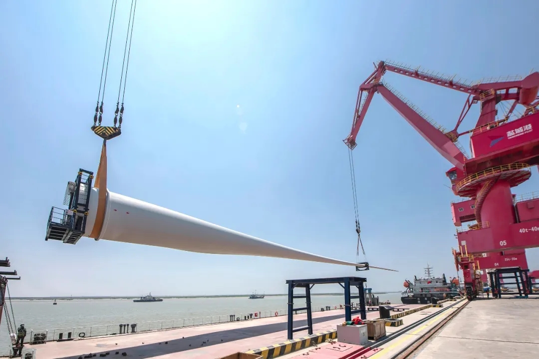 近日,射陽港區成功裝卸102米風電葉片,刷新了自身吊裝長度紀錄,為射陽港區打造風電產業特色港邁出了堅實一步。
