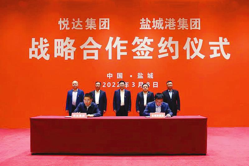 張乃文表示,譜寫“強(qiáng)富美高”新鹽城現(xiàn)代化建設(shè)的新篇章,最大優(yōu)勢(shì)在沿海、最大機(jī)遇在沿海。在沿海開發(fā)疊加機(jī)遇和“雙碳”背景下,悅達(dá)集團(tuán)與鹽城港集團(tuán)強(qiáng)強(qiáng)聯(lián)合,協(xié)同發(fā)力能源、汽車、物流、金融、基金等領(lǐng)域,既貫徹了市委、市政府關(guān)于打造特色優(yōu)勢(shì)產(chǎn)業(yè)、優(yōu)化國(guó)有資本戰(zhàn)略布局的重大部署,又有利于兩大集團(tuán)發(fā)揮各自主業(yè)優(yōu)勢(shì),推進(jìn)融合互補(bǔ)發(fā)展。希望雙方以此次戰(zhàn)略合作為契機(jī),加快推進(jìn)重大項(xiàng)目落地達(dá)效,攜手打造我市國(guó)企合作示范標(biāo)桿,奮力扛起“爭(zhēng)當(dāng)表率、爭(zhēng)做示范、走在前列”光榮使命,為全市勇當(dāng)沿海地區(qū)高質(zhì)量發(fā)展排頭兵、推動(dòng)“強(qiáng)富美高”新鹽城現(xiàn)代化建設(shè)作出新的更大貢獻(xiàn)。