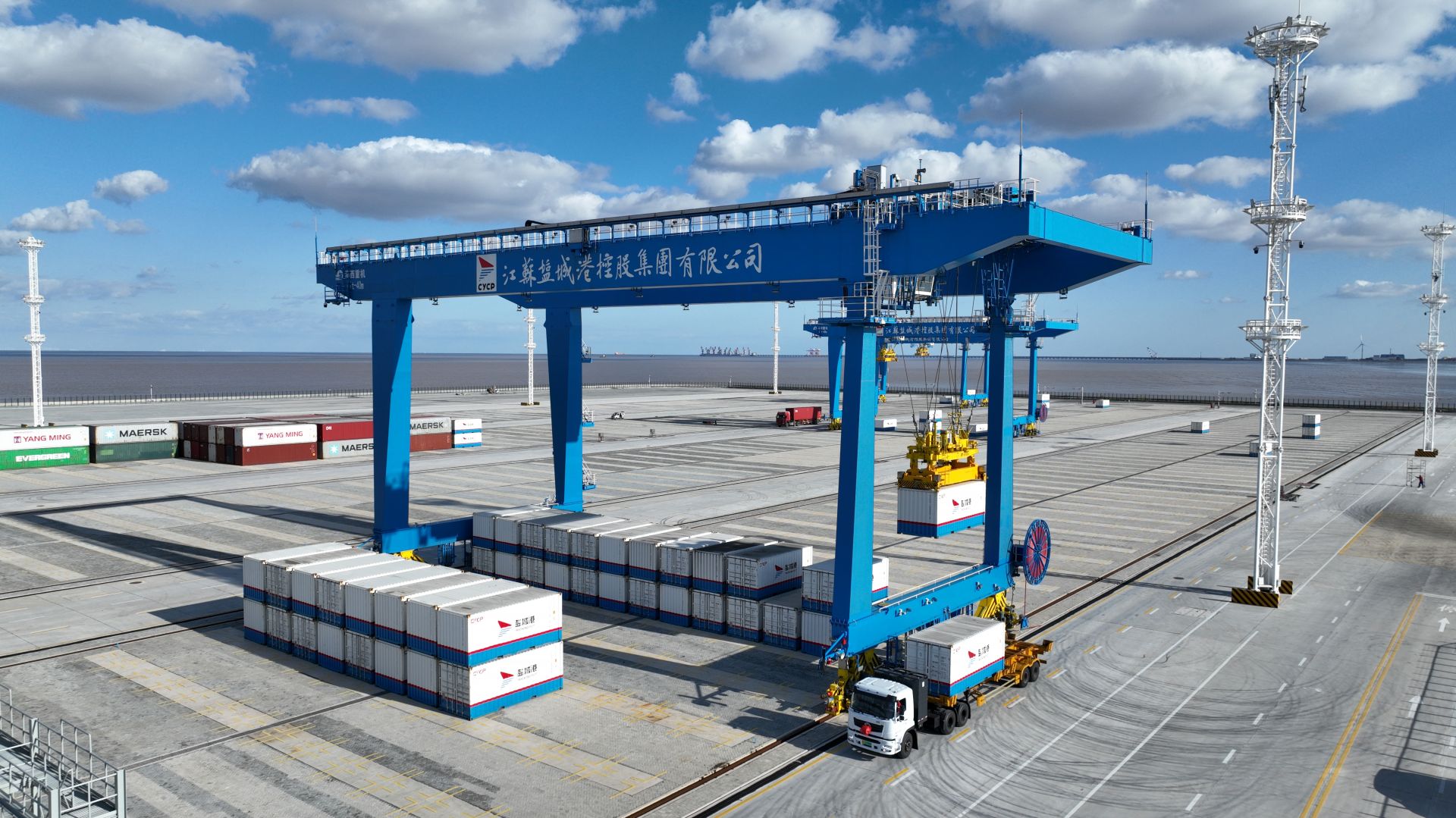 鹽城港自動化集裝箱堆場項目由江蘇鹽城港智慧港口有限公司投資建設,總投資4.5億元,綜合運用5G、自動化控制、北斗定位、數字孿生、智能一體化TOS(集裝箱操作系統)等先進技術,進行數字化、智能化、多維度融合,實現設備遠程控制、全過程設備調度一體化、生產作業現場無人化,年周轉集裝箱達100萬標箱。滿負荷生產運營后,預計可實現年營業收入1.4億元。