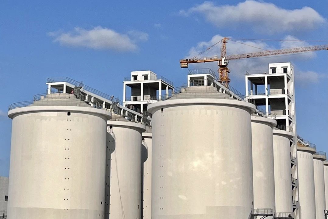 據(jù)介紹,淺圓倉單體是項目建設的關鍵點,也是重難點,建成后項目周轉貨物可達80萬噸,是濱海港區(qū)規(guī)模最大的儲備糧庫項目。施工過程中,項目團隊采用了淺圓倉滑模施工工藝,在圓周均勻布置46個油壓千斤頂,推動模板系統(tǒng)整體緩慢滑升,全時段開展邊滑升邊進行倉壁的鋼筋綁扎和混凝土澆筑作業(yè),在持續(xù)作業(yè)中實現(xiàn)倉壁一次成型。