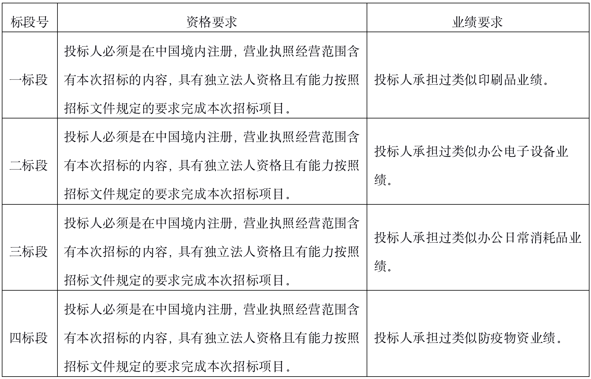 6.1符合資質范圍的投標人可以參與上述四個標段的投標。