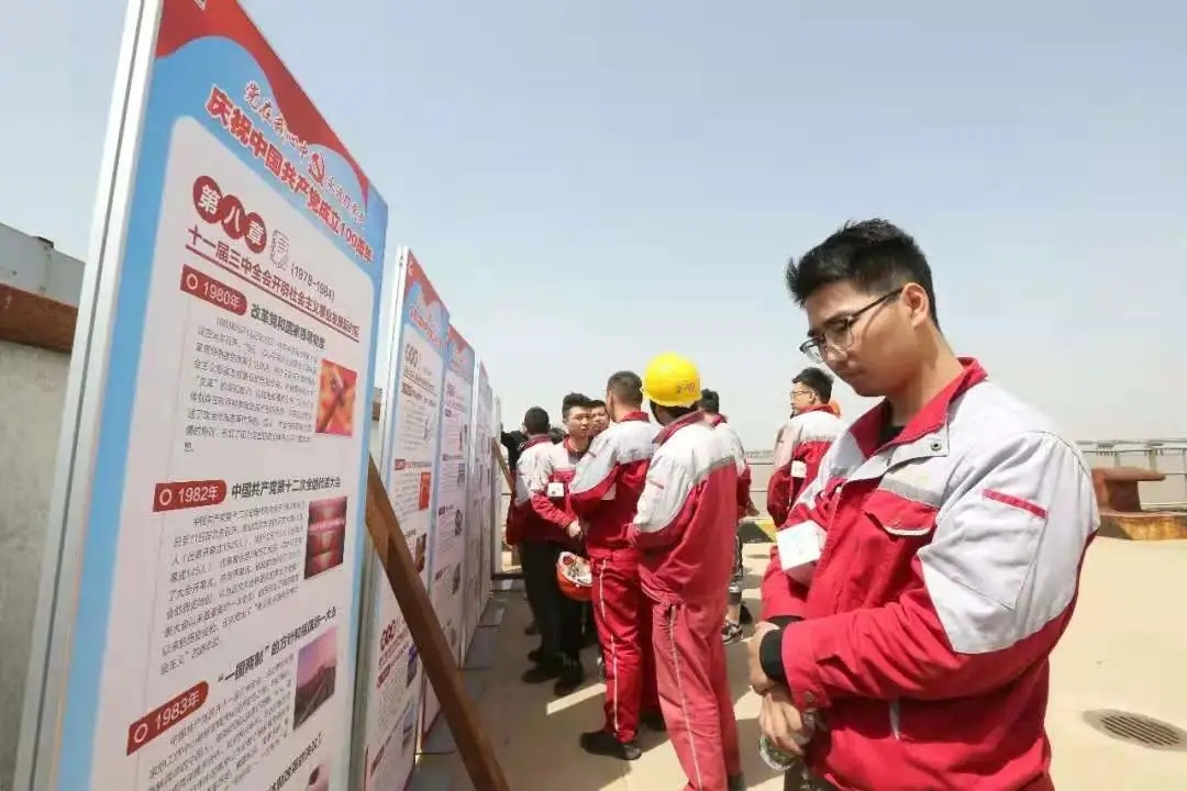 在大豐港區工作人員的辦公桌上,都有一本《鹽城港黨史學習教育筆記本》。翻開一本本筆記,每頁都布滿了密密麻麻的筆記,這不僅是對學習內容的記錄,更是一次次對思想的洗禮,對初心的叩問。大豐港區通過組織參觀紅色基地、觀看紅色影片、設置宣傳展板等形式,全方位宣傳開展好黨史學習教育的深刻意義,讓廣大干部職工認識到,學習黨史不僅是黨員同志的事,更是全員參與的一場歷練,形成了“人人學黨史,個個爭先進”的良好氛圍。