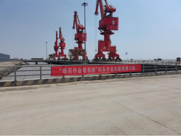 為加強(qiáng)碼頭作業(yè)現(xiàn)場(chǎng)的安全生產(chǎn)規(guī)范化管理,進(jìn)一步提升安全生產(chǎn)作業(yè)以及標(biāo)準(zhǔn)化隊(duì)伍建設(shè)水平,4月14日上午,射陽港區(qū)在碼頭現(xiàn)場(chǎng)開展“規(guī)范作業(yè)看我的”觀摩活動(dòng),市國(guó)資委副主任馬如超出席,鹽城港集團(tuán)安全環(huán)保部、生產(chǎn)經(jīng)營(yíng)技術(shù)部相關(guān)負(fù)責(zé)同志參加。