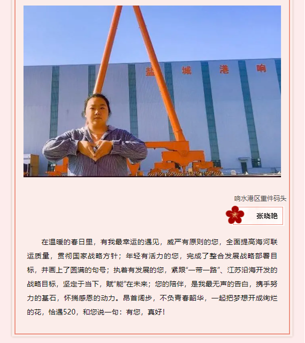 “520” 表白日 今天有人告白親情 有人告白愛情 有人告白友情 “520”不僅有暖心的告白 更有堅毅的奮斗 鹽城港人用奮斗 告白向海圖強(qiáng)、筑夢海洋的初心和使命 一起來聽聽鹽城港人的花式告白~ (節(jié)選)