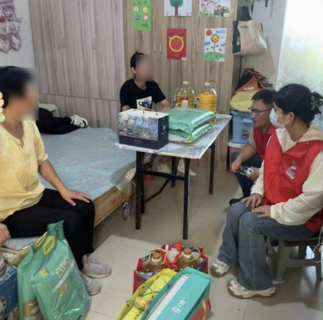 志愿者首先來到大豐區殘聯殘疾人綜合服務中心,工作人員耐心細致地為他們介紹慰問對象的基本情況。隨后,志愿者集中前往慰問對象家中,為孩子與他的家人送去月餅和生活必需品,并與他們圍坐一起,展開親切而深入的交流。志愿者耐心傾聽每一個家庭的故事,無論是孩子們學習上的小進步,還是生活中遇到的點滴困難,都成為了彼此間情感交流的橋梁。他們鼓勵孩子們勇敢追夢,面對挑戰時保持樂觀與堅韌;同時,積極與家長溝通,旨在助力他們在孩子的日常成長道路上成為更加貼心與智慧的引路人。