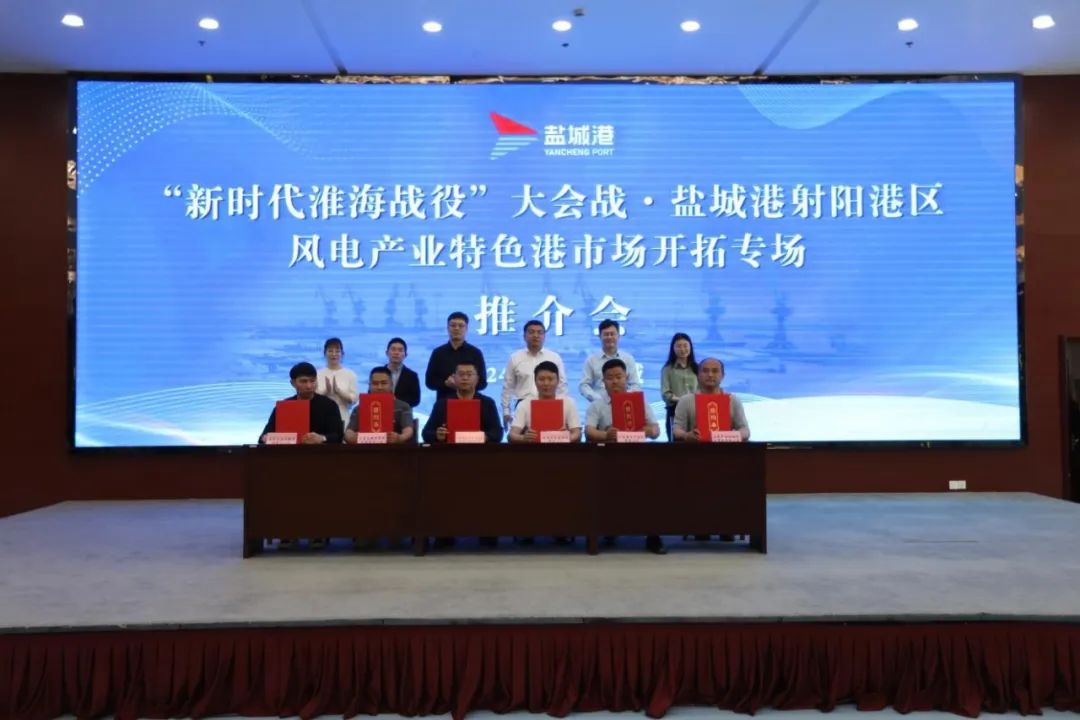 現(xiàn)場氣氛熱烈高漲。射陽港區(qū)與數(shù)十家客戶代表簽訂協(xié)議,協(xié)議年中轉(zhuǎn)風(fēng)電葉片100套,預(yù)計實現(xiàn)營收超700萬元。