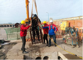 “水下有較大的塊石和槽鋼,不好清理,可能要用切割機(jī)來配合”,面對潛水員發(fā)出的信號,現(xiàn)場負(fù)責(zé)人正在有條不紊地對現(xiàn)場施工進(jìn)行合理安排,以確保水下石塊、槽鋼等雜物能安全及時(shí)地進(jìn)行清除。