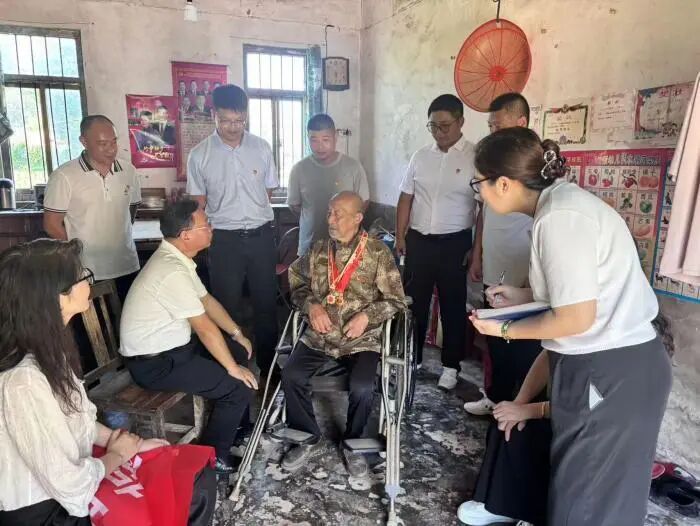 下午,全體黨員前往93歲老兵周立忠家中開展走訪活動。走進屋中,老人身著整潔舊軍裝、佩戴勛章,雖已年過九旬,卻依舊精神矍鑠、身姿挺拔,回憶起當年戰(zhàn)斗經(jīng)歷時,原本平和的眼神瞬間閃爍出堅定光芒,仿佛重回烽火連天的歲月。“我是17歲當?shù)谋菚r候條件苦啊,吃不飽、穿不暖,但大家心里都憋著一股勁,要把敵人趕出去!”老兵用樸實的語言,將大家?guī)Щ啬莻€艱苦卓絕的歲月,每個細節(jié)都飽含著對祖國的赤誠和熱愛。當談及曾參與的渡江戰(zhàn)役時,老人更是打開了話匣子,從戰(zhàn)前的緊張準備,到渡江時的驚險瞬間,再到戰(zhàn)友間的相互扶持,將一段段驚心動魄的往事娓娓道來。黨員同志們圍坐在老人身邊,聽得格外專注,不時輕聲追問細節(jié)、積極交流互動,大家被他們的英勇事跡和愛國精神所深深打動,更深刻理解了“英雄”二字的背后,是舍生忘死的擔當,是刻在骨子里的愛國赤忱,更是激勵后人奮勇前行的精神力量。
