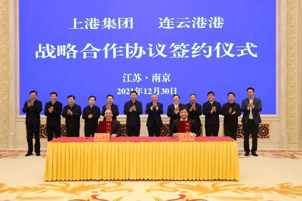 2021年12月30日,上海國際港務(wù)(集團)股份有限公司和連云港港口控股集團有限公司,在南京正式簽署戰(zhàn)略合作協(xié)議,標志著在共建“一帶一路”的背景下,上海港、連云港港的合作翻開嶄新一頁,連云港市打造“千萬標箱、東方大港”邁出了關(guān)鍵一步。