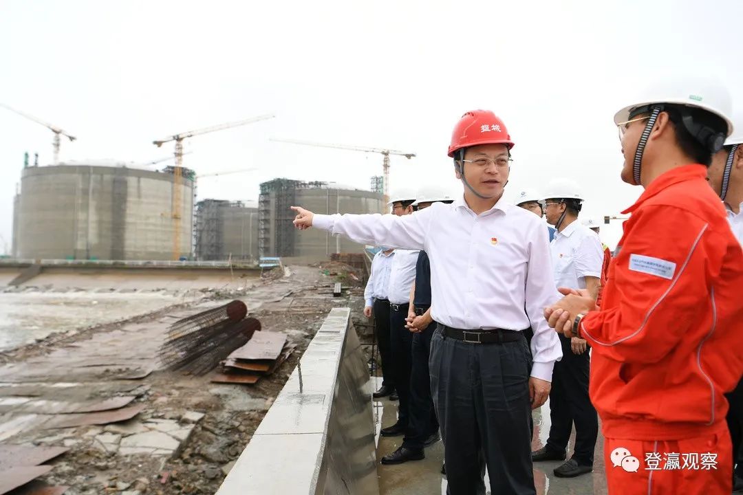 ▲曹路寶察看中海油濱海港LNG項(xiàng)目現(xiàn)場(chǎng)