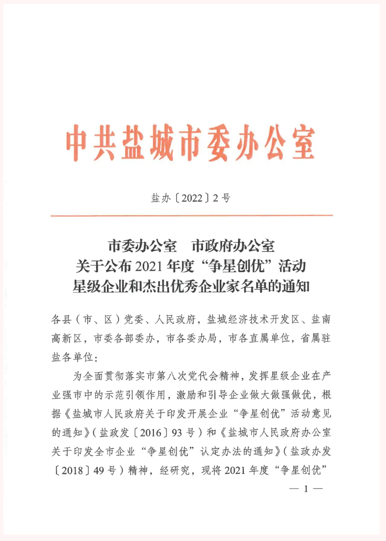 2月7日,春節后上班第一天,從全市勇當沿海地區高質量發展排頭兵推進會暨2021年度綜合考核表彰大會上傳來好消息,集團榮獲2021年度“爭星創優”活動“服務業五星企業”榮譽稱號,集團黨委書記、董事長、總經理周正雄榮獲“鹽城市杰出企業家”榮譽稱號。
