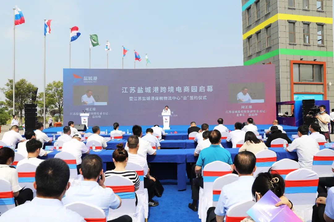 啟幕儀式上還舉行了江蘇鹽城港保稅物流中心“云”簽約儀式。簽約儀式后,與會人員走進跨境電商產業園日本館、東南亞館、韓國館等場館進行觀摩,詳細了解跨境電商產業園運營情況。