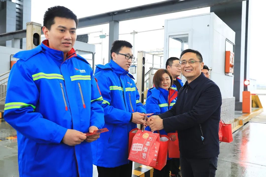 鹽城港港口公司2022年的貨物吞吐量再創歷史新高,為集團實現兩年翻番的目標作出了重要貢獻。在港口公司糧食碼頭,陸帥和堅守崗位的工作人員一一握手,感謝大家的默默奉獻以及為保障港口安全平穩運行而付出的努力。他希望港口公司全體干部職工在2023年繼續以黨的二十大精神為指引,深入貫徹落實集團黨委一屆三次全體(擴大)會議部署要求,進一步提高政治站位,扎實履行好崗位職責,繼續發揚能吃苦、能戰斗、能奉獻、敢擔當的優良作風,更加堅定目標信心,抓實抓牢碼頭生產經營各項工作,為集團高質量融合發展再創佳績、再立新功。
