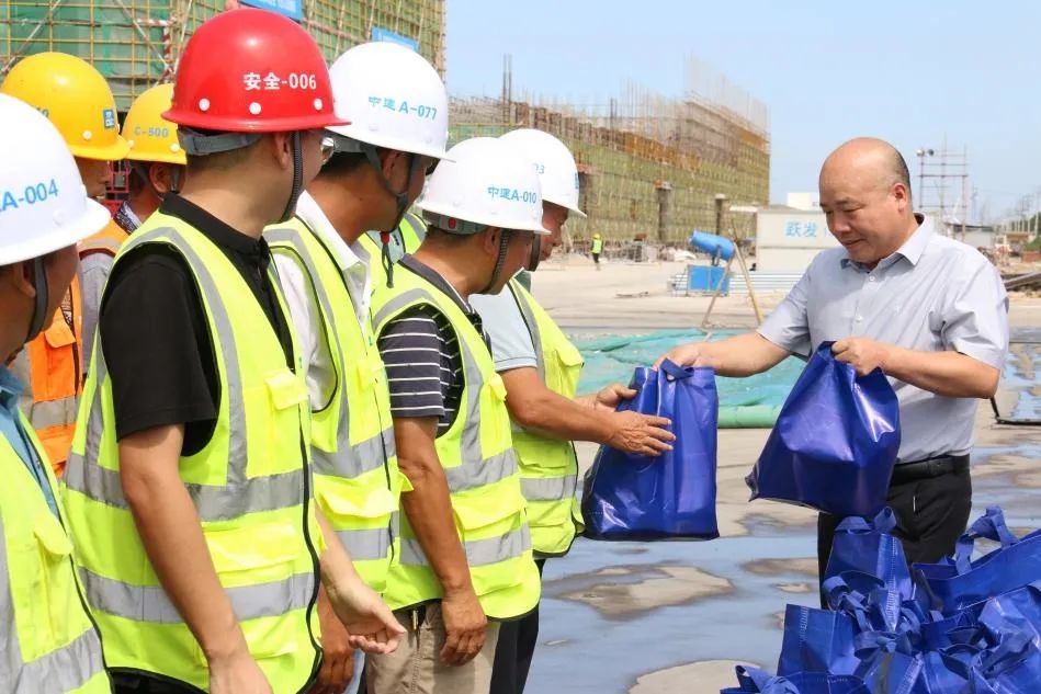 炎炎夏日,酷暑當頭。為切實做好防暑降溫工作,維護全港廣大職工勞動和生命健康權益,7月30日,集團黨委書記、董事長周正雄率隊前往石化碼頭開展“夏送清涼”活動,并代表集團黨委、董事會向高溫下堅守一線的勞動者送去問候和關懷。