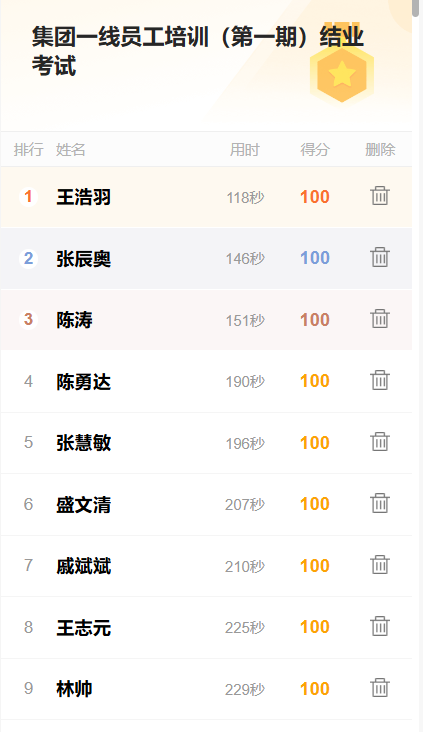 本次培訓立足降本增效,創新采用電子簽到、無紙化智能考試,一方面節約了時間、人力、紙張成本,另一方面省略了會前簽到、批改試卷、統計排名等環節,大大提高工作效率,推動培訓工作的信息化管理邁上新臺階。