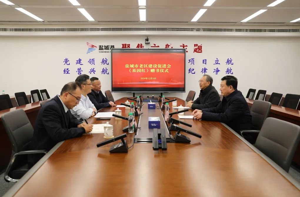 在習(xí)近平總書記來到鹽城市考察新四軍紀(jì)念館一周年之際,12月3日,市老區(qū)建設(shè)促進(jìn)會(huì)副會(huì)長茆訓(xùn)東、周廣展來集團(tuán)考察指導(dǎo),并贈(zèng)送《基因紅—鹽城市紅色資源通覽》系列圖書。集團(tuán)黨委副書記、董事、總經(jīng)理陸帥,集團(tuán)黨委副書記、紀(jì)委書記周旭東等參加。