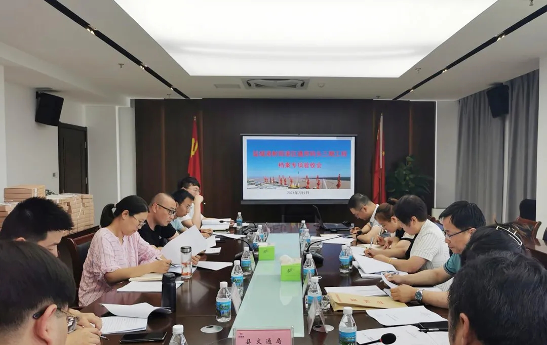 7月9日下午,射陽港區組織召開鹽城港射陽港區通用碼頭三期工程檔案專項驗收審查會,市交通運輸綜合行政執法支隊質量執法大隊、縣交通運輸局、縣檔案局相關負責同志,以及項目相關參建單位同志參加會議。