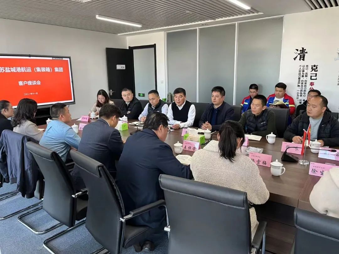 11月12日下午,航運(yùn)(集裝箱)集團(tuán)召開年度客戶座談會(huì),邀請(qǐng)江蘇坤歌智能科技、阿特斯陽光電力等眾多合作客戶企業(yè)代表到場(chǎng)參會(huì)。本次會(huì)議以“協(xié)同合作、共促發(fā)展”為主題,展示了航運(yùn)(集裝箱)集團(tuán)2021年期間在航線開辟、碼頭建設(shè)、市場(chǎng)開拓等方面取得的工作成效,同時(shí)廣泛征集2022年度工作部署實(shí)施意見。