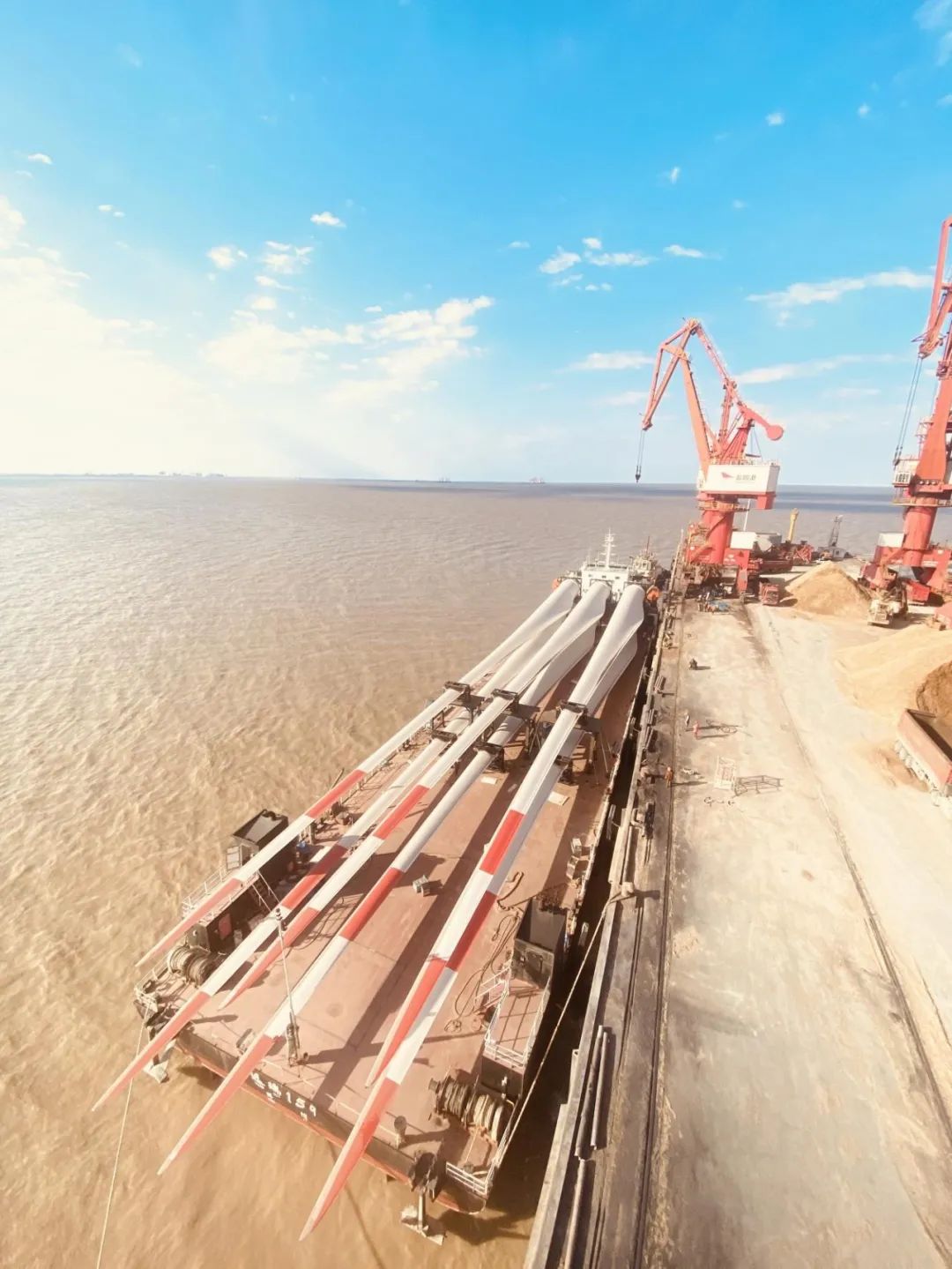 11月28日上午,隨著最后2套90米風(fēng)電葉片被緩緩吊起,平穩(wěn)裝上遠(yuǎn)瑞159輪,這意味著鹽城港大豐港區(qū)港口公司2021年金風(fēng)科技海上風(fēng)電項(xiàng)目裝船任務(wù)圓滿完成。本年度,港口公司合計(jì)完成金風(fēng)科技海上風(fēng)電項(xiàng)目風(fēng)電葉片吊裝148套,735492立方,累計(jì)裝船94條。