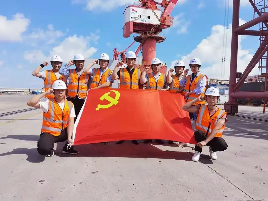 在黨旗的引領下,鹽城港集團向海而興的步伐更加鏗鏘有力。