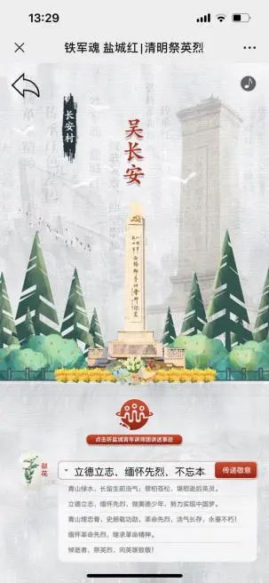 由于疫情原因,今年各大公墓閉園,暫停現(xiàn)場祭掃活動,鹽城港大豐港區(qū)積極響應鹽城市“鐵軍魂鹽城紅”清明祭英烈云祭掃的號召,開展“清明祭英烈·云端寄哀思”活動。
