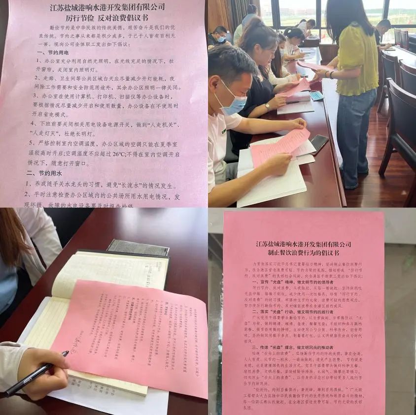 響水港區發起“厲行節約反對浪費”倡議活動,每個人在倡議書上簽字,爭做帶頭的倡議者,爭做勤儉節約的傳播者、實踐者、監督者。此次倡議活動號召全港區職工積極行動,從自身做起,從點滴做起。