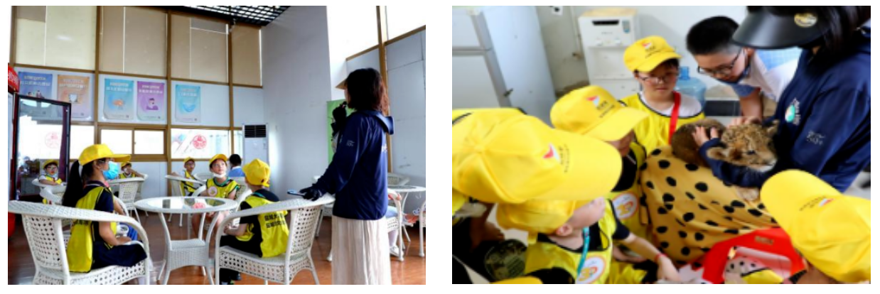活動從參觀動物園開始,小朋友們在動物配餐區(qū),學(xué)習(xí)動物科學(xué)配餐、營養(yǎng)知識,了解不同的動物需要有不同的配比食物,并親手為動物制作美食,當(dāng)一回動物營養(yǎng)師,做一頓愛心滿滿的營養(yǎng)餐;在大熊貓館觀看大熊貓吃播,學(xué)習(xí)大熊貓的科普知識;跟著飼養(yǎng)員走進動物館舍,了解動物寶寶孕育過程并嘗試照顧新生動物,學(xué)習(xí)如何正確喂養(yǎng)動物、觀察動物,與動物朋友們共度美好時光;在海洋世界玩轉(zhuǎn)海洋樂園,觀看海豚表演。