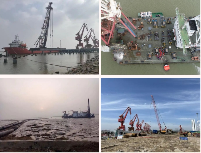 在射陽港區碼頭四期建設工地,工程機械往來穿梭,施工人員不懼“烤驗”,揮汗如雨,處處一派繁忙景象。為確保施工質量和安全有序可控,港區項目組認真組織工程監理進行圖紙會審,從地基處理、管樁驗收、支架搭設、灌注樁施工等每道工序進行嚴格把控。隨著完成地基靜載試驗,陸域東、西兩側開挖排水溝,標志著項目整體施工進度又向前邁進一大步。