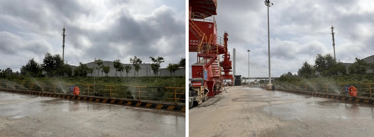 針對(duì)碼頭裝卸作業(yè)頻繁、車(chē)輛往來(lái)運(yùn)輸極易導(dǎo)致?lián)P塵的問(wèn)題,響水港區(qū)灌江港務(wù)分公司在碼頭前沿進(jìn)行小改造,在以往前沿基礎(chǔ)設(shè)施上增設(shè)管道噴淋設(shè)施,可根據(jù)作業(yè)強(qiáng)度、揚(yáng)塵濃度、風(fēng)速等實(shí)時(shí)調(diào)節(jié)噴淋量,確保及時(shí)有效控制揚(yáng)塵,同時(shí)還兼顧了車(chē)輛通行與人員行走的安全性,為碼頭作業(yè)創(chuàng)造更加干凈、整潔、安全的環(huán)境。