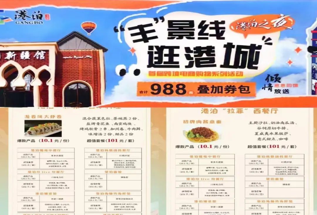 港泊酒店管理分公司旗下餐飲門店位于跨境電商園內(nèi),餐飲店鋪匯集了各地美味佳肴,有湘菜館、日料餐廳、海鮮館、新疆館、泰國餐廳、茶餐廳、西餐廳、中餐廳等。