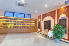 以絲綢之路為背景的中國新疆館,展現了一個古老與現代交融的西域風情。踏入館內,便仿佛回到了古代商旅絡繹不絕的絲路驛站。新疆風格的裝飾與濃烈的民族色彩,讓你仿佛置身于西域的廣袤天地。葡萄干、瓜子、奶片與果干,承載著這片大地的饋贈,象征著悠久歷史中的富饒與繁盛。