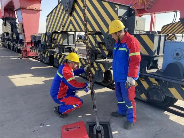 “磨刀不誤砍柴工”,射陽港區(qū)結合現(xiàn)場實際情況,制定班組檢查方案,重點做好防寒、防凍、防風、防火等季節(jié)性工作的準備。生產保障組將設備管理關口前移,加大冬季設備整修力度,無死角地開展設備換季大檢查,對設備逐件、逐項進行防寒整治,對發(fā)現(xiàn)的問題做到及時整治、協(xié)調處理、實名銷號,同時對設備密封性能進行“地毯式”排查,建立相關臺賬。按照大修標準和周期管控要求,對門機設備四大主要機構及電控部分進行檢修,切實提升設備可靠性,有效保障連續(xù)生產。