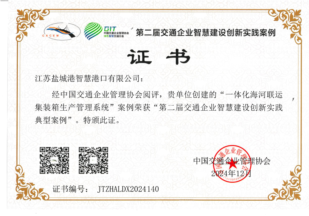 近日,從全國第二屆交通企業(yè)智慧建設(shè)創(chuàng)新實踐案例發(fā)布會傳來喜訊,鹽城港集團(tuán)“一體化海河聯(lián)運(yùn)集裝箱生產(chǎn)管理系統(tǒng)”“鹽城電子口岸平臺”兩項成果入選第二屆交通企業(yè)智慧建設(shè)創(chuàng)新實踐-典型案例。