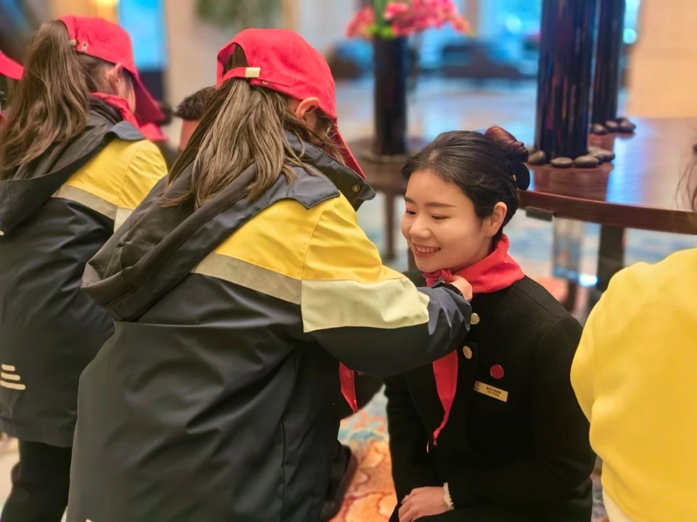 近日,港泊半島酒店與大豐港實驗學校聯合舉辦了以“三月春‘鋒’暖心扉,助人精神代代傳”為主題的榜樣尋訪活動。活動當天,少先隊員們首先觀看了鹽城港宣傳片,感受著黃海之濱的獨特魅力和日新月異的變化。隨后,他們走進港泊半島酒店餐廳,酒店員工張曉芳展示了疊口布花的技藝,還分享了自己捐獻造血干細胞的感人經歷,生動詮釋了雷鋒精神的內涵。在采訪環節,少先隊員們積極提問,與張曉芳進行了深入交流,現場氣氛熱烈。