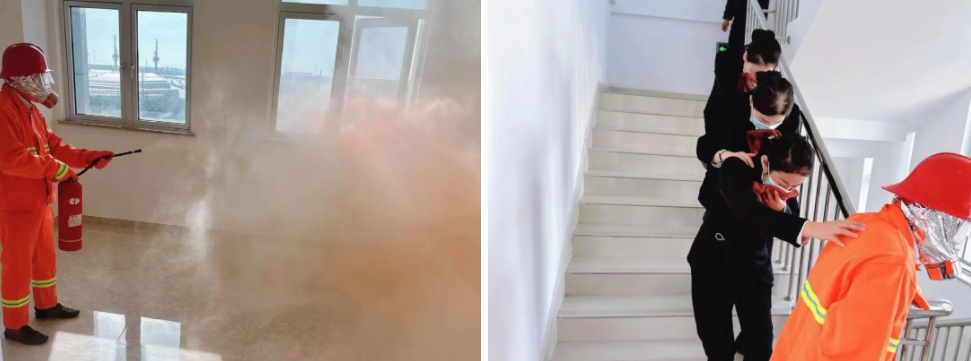 消防知識講座從火災(zāi)的分類、消防器材的使用、保養(yǎng)等方面向大家生動講解了消防安全重要性。實操模擬火災(zāi)現(xiàn)場,保安組臨危不懼,一隊手提滅火器、拔掉保險銷、對準(zhǔn)火焰根部噴射,“大火”很快被撲滅;另一隊指揮大家用濕毛巾捂住口鼻,彎腰低姿態(tài)前行,有序地撤離到安全區(qū)域。通過培訓(xùn)演練,進(jìn)一步增強(qiáng)了安全意識和臨危不亂的心理素質(zhì),以實際行動筑牢了港區(qū)的“防火墻”。