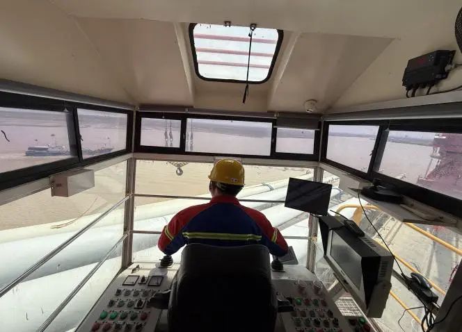 抓斗起落在數十米的高空中劃出流暢弧線,鋼齒咬合的瞬間,貨物簌簌滑落,門機室的玻璃接住了陽光拋來的金線,織進了門機工的工裝里。他們心無旁騖,雙手穩如磐石,憑借毫米級的操作精度,滿載時控制抓斗勻速下沉,避免貨物散落;空載時調整角度規避障礙物,確保設備與人員安全,全力提升港區貨物吞吐量,為港區完成年度目標任務貢獻力量。