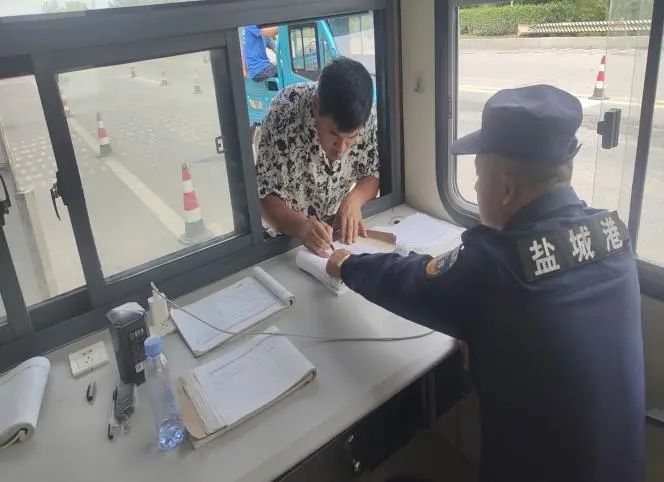 “你好,請將車停一下,登記進港。”門崗保安員身子挺拔,手持醒目的紅色停車示意牌,維持港區入口處的進出安全。他們目光堅定,迅速核對駕駛員出示的證件與進港通行證,指尖在登記簿上飛速記錄車牌、姓名、事由等信息,同時與職能部門實時核驗身份。他們說,只要穿著保安服,我們就必須用嚴謹細致的工作狀態,守牢港口的第一道安全防線。