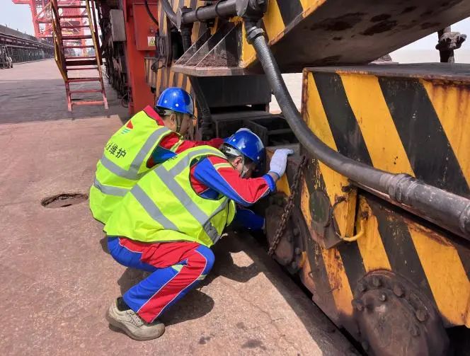 散貨碼頭分公司充分利用生產(chǎn)作業(yè)空檔期,制定機(jī)械設(shè)備專項(xiàng)整治方案。明確班次人員,分組包干確定工作職責(zé),重點(diǎn)查找設(shè)備常發(fā)故障,潛在隱患問題。針對門機(jī)、堆料機(jī)、皮帶機(jī)、抓斗等大型重點(diǎn)設(shè)備開展“大體檢”,全面檢查潤滑油、螺栓、鋼絲繩、電源等關(guān)鍵部件的損耗狀況,消除各類潛在隱患。