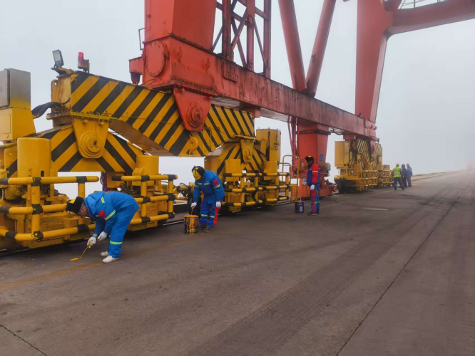 全面開展防腐涂漆工作,大力組織班組人員深入排查起重設(shè)備吊具、吊鉤、鋼絲繩銹蝕情況,分批次進(jìn)行深度清潔,細(xì)致打磨,去除油污雜質(zhì),潤滑刷漆上色,清理油漆褪色、掉皮、鼓包,開展二次補(bǔ)漆工作,為設(shè)備穿上“新衣”,進(jìn)一步提升設(shè)備使用壽命,讓港容港貌煥發(fā)“新顏值”。