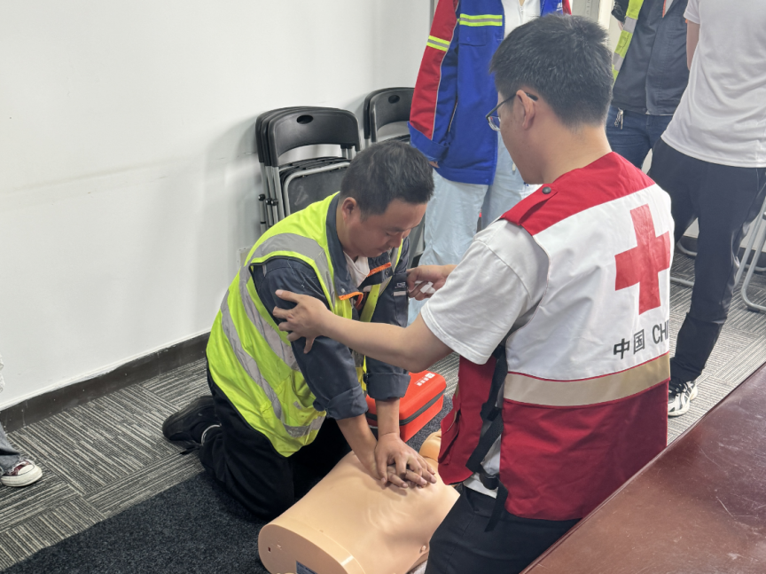 活動中,縣紅十字會的資深講師團隊通過生動的案例和通俗易懂的語言,向大家闡述了應急救護的重要性和必要性。從日常生活中常見的意外事故,如溺水、觸電、氣道異物梗阻,到突發疾病,如心臟驟停等,每一個案例都揪著大家的心,也讓大家深刻認識到掌握應急救護技能,或許就能在關鍵時刻挽救一條生命。在實踐演練中借助模擬人進行現場示范,現場演示了心肺復蘇(CPR)、自動體外除顫儀(AED)等關鍵急救操作。