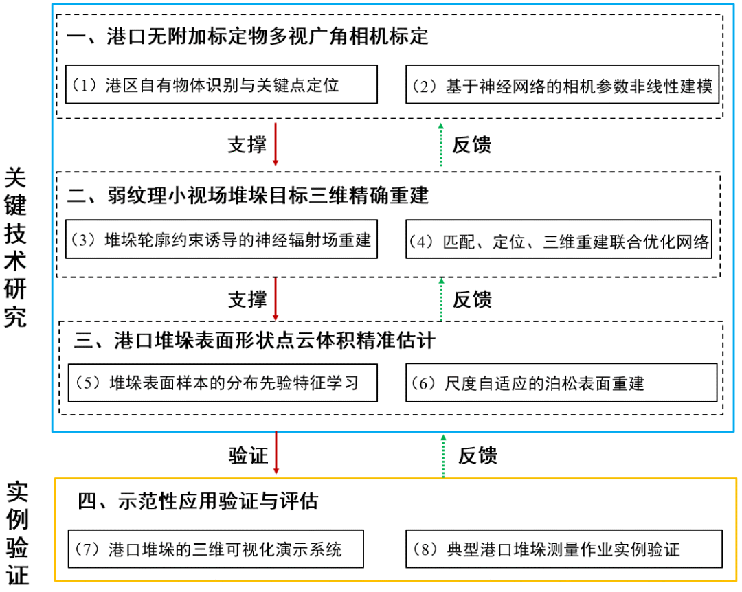 近日,集團科技創(chuàng)新課題《基于港區(qū)視頻的港口堆垛智能化測量作業(yè)系統(tǒng)》成功斬獲雙項核心知識產權——《一種基于視頻監(jiān)控的港口堆垛測量系統(tǒng)及測量方法》發(fā)明專利與《散貨堆垛三維重建可視化系統(tǒng)》計算機軟件著作權,同時系統(tǒng)已在響水港區(qū)散雜貨堆場實現試點應用落地,不僅驗證了技術的可行性與穩(wěn)定性,更標志著集團“從技術研發(fā)到成果轉化”的創(chuàng)新鏈路貫通,港口智能化升級邁出實質性步伐。