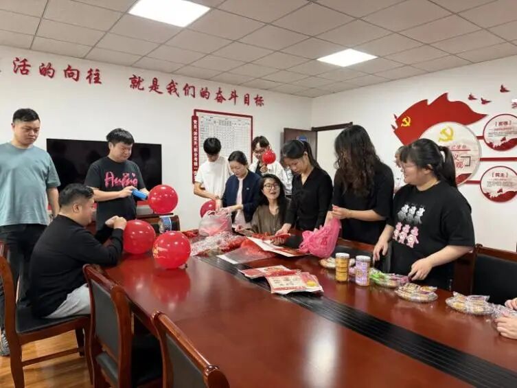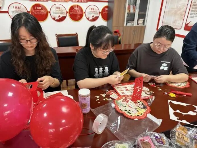 活動伊始,紅色的國旗與五彩氣球便在指尖翻飛成景。員工們分工協(xié)作,掛燈籠框架、鋪賞月桌布,半小時內,活動室已氤氳著雙重喜慶——墻面的國旗輝映著案頭的桂花枝,提前備好的兔形燈架靜待添彩,節(jié)日的熱鬧氛圍瞬間拉滿。