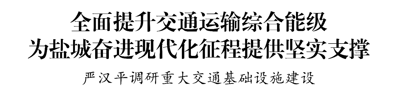 10月29日下午,市長嚴(yán)漢平調(diào)研我市重大交通基礎(chǔ)設(shè)施建設(shè)工作,強(qiáng)調(diào)要深入學(xué)習(xí)貫徹黨的二十屆四中全會精神和習(xí)近平總書記關(guān)于交通強(qiáng)國的重要論述,高質(zhì)高效推動重大交通基礎(chǔ)設(shè)施項目建設(shè),加快構(gòu)建內(nèi)暢外聯(lián)交通運(yùn)輸體系,為鹽城奮進(jìn)現(xiàn)代化征程提供堅實(shí)支撐。