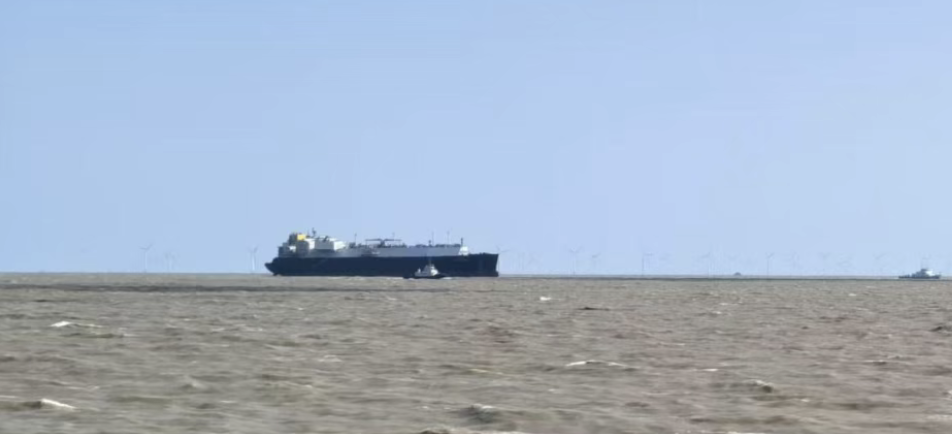 該輪總長299.0米,船寬46.4米,本次試航艙內載有400立方米LNG,屬于高危特種船舶。其首次試航并靠泊LNG碼頭面臨多重風險:首先,運輸中的LNG需維持-162℃超低溫,船體金屬結構易因溫度應力產生脆化,引航作業風險高、技術要求嚴;其次,船舶進港吃水8.5米,而濱海港區LNG支航道淺點水深僅9.2米,富余水深不足,存在觸底風險;此外,當日海域陣風達6級,流向復雜,加之船舶受風面積巨大(相當于12個標準籃球場),操控難度呈幾何級數增長。