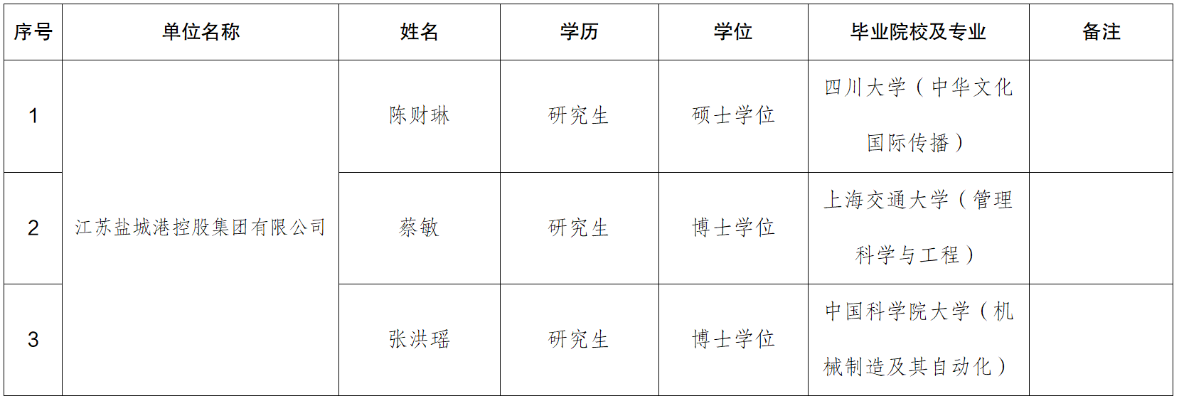 根據江蘇鹽城港控股集團有限公司相關程序規定,現對3名擬錄用人員進行公示。