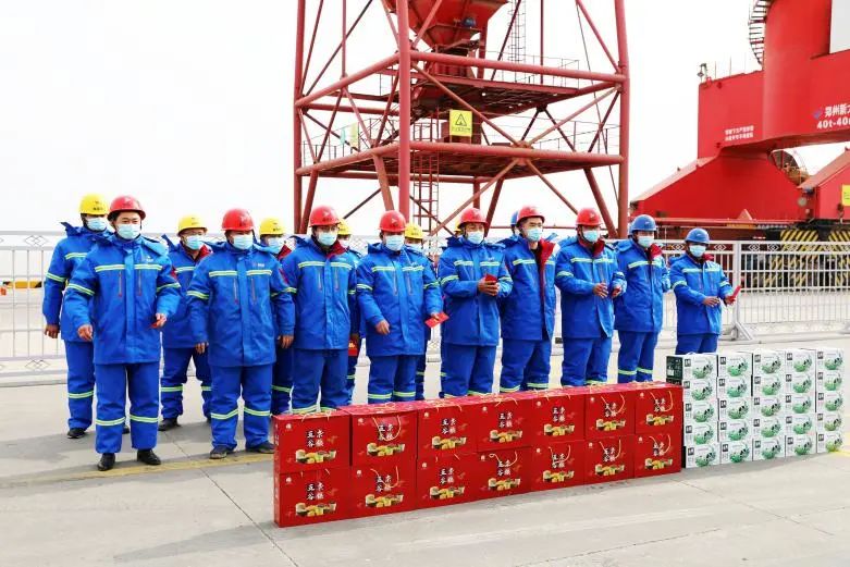 在大豐港區(qū)集裝箱碼頭,周正雄和堅守崗位的工作人員一一握手,感謝大家的默默奉獻(xiàn),為保障港口安全平穩(wěn)運行而付出的努力,并向他們送上慰問品。他說,去年以來,集團(tuán)統(tǒng)籌做好安全生產(chǎn)和疫情防控各項工作,并取得了良好的業(yè)績,這離不開全體員工的共同努力和無私奉獻(xiàn),離不開員工家屬對集團(tuán)的信任和關(guān)心,更離不開家屬們對員工的支持和理解。希望全體員工按照集團(tuán)黨委的要求,切實利用好“早晨會、晚匯報”這一工作模式,對晨會的形式和內(nèi)容進(jìn)行再融合再提升,更加全身心地投入工作,全力打造出一支港口鐵軍隊伍,為鹽城港人樹立榜樣,全面激活港口活力,增強發(fā)展后勁,為完成全年和各項工作目標(biāo)而繼續(xù)努力、繼續(xù)奮斗。