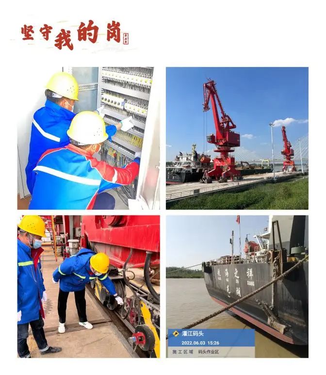 6月是安全生產(chǎn)月,圍繞著“遵守安全生產(chǎn)法,當(dāng)好第一責(zé)任人”的活動主題,周密謀劃、細(xì)心布置。端午假期,港區(qū)上下狠抓安全管理,加強重點部位、關(guān)鍵設(shè)備、重要區(qū)域的巡查力度,嚴(yán)謹(jǐn)細(xì)致精神保證工作有序進行,設(shè)備安全平穩(wěn)。匆忙的腳步、忙碌的身影體現(xiàn)著港口人的堅韌與拼搏。