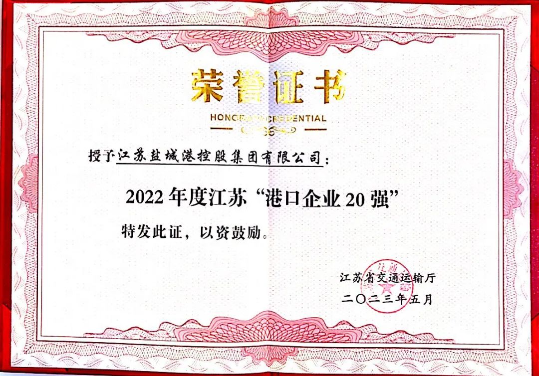 近日,省交通運輸廳首次舉辦江蘇交通“建設(shè)企業(yè)20強”等認(rèn)定名單(附后)發(fā)布活動,鹽城港集團被認(rèn)定為“2022年度江蘇港口企業(yè)20強”。